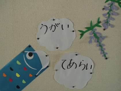 北校舎の1階にある掲示板には,「1年生になったら」の掲示がされています。素敵な鯉のぼりも一緒に掲示されていています。学校が再開したらぜひ見てくださいね。その中にはマスクをつけた鯉もいます。見つけてみてくださいね。