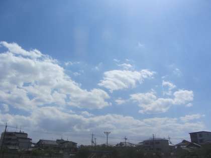雲はかたまりでうかんでいました。ふわふわとしたけれど,ぶあつそうでした。