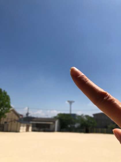 1「空がき」…空に大きくかく。(先生はほんとうの空にかきました!)