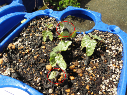 たねを 6こ うえて, 1しゅうかんで 5ほん めが でました!