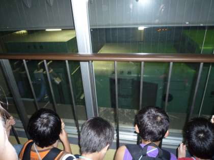工場の機械を操作する「中央制御室」,蒸気で電気をつくる「蒸気タービン発電機」を見ながら説明を聞きました。ごみをためる「ごみピット」からクレーンで持ち上げるところも見ることができ,迫力満点の動きに子どもたちは歓声を上げていました。