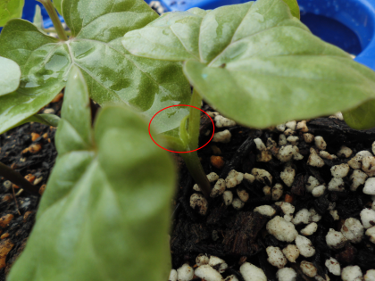 がっこうのあさがお は はっぱとはっぱの あいだに にょきっと