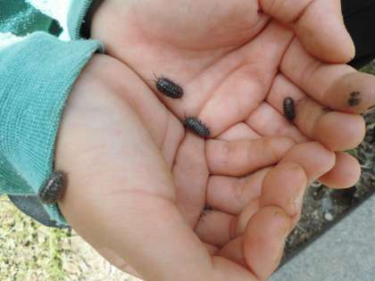 だんごむしが,てのうえであるくと,こしょこしょしてきもちいいです。