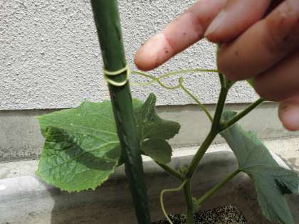 きゅうりは,つるをまきつけて,おおきくせいちょうしてきました。