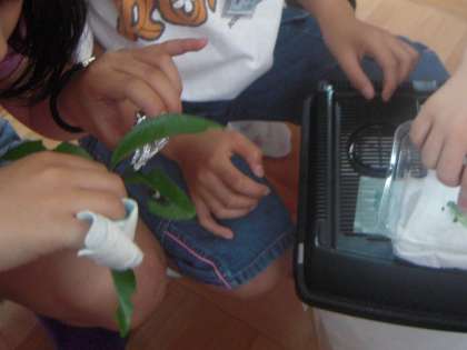 授業の最後には,アゲハチョウが実際に卵を産む様子も見せていただき,子どもたちからは歓声の声が上がりました。