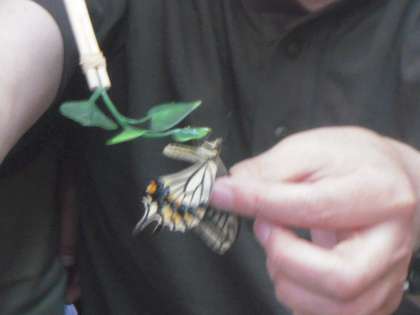 授業のはじめにはアゲハチョウを正しくつかむ方法を教えていただき,昆虫が苦手な子も楽しそうにアゲハチョウを触っていました。