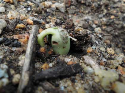 がんばってつちをどけようとがんばっている,たねです。