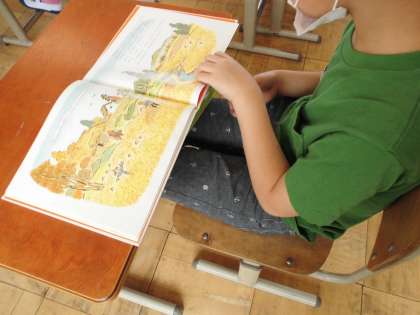 あさによういができたこどもから,しずかに本をよんで,まつすがたがみられました。