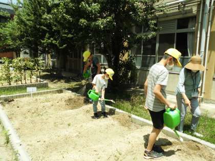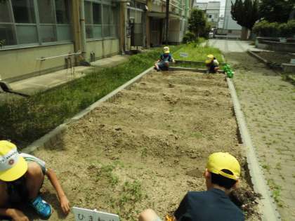 昨日と今日でひまわり学級の畑にひまわりの種を植えました。