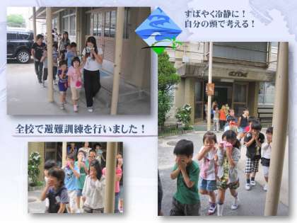 やはり,3月に起こった「東日本大震災」の被害の様子を報道を通して知っているだけに,子どもも大人も大変真剣に取り組むことができました。どの子も静かに黙々と訓練をしている様子を見ることができました。