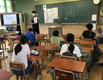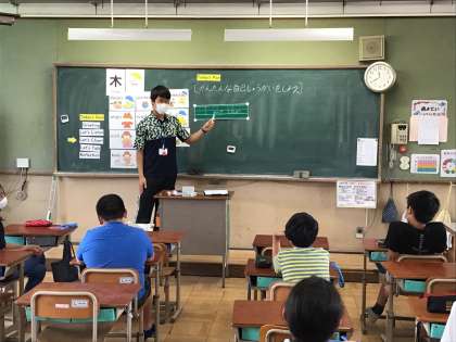 「I like〜.」などの文型を使って,自己紹介をしていました☆