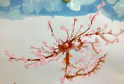 絵の具とストローを使い,自由にイメージしながら進めたり,できた模様と模様を組み合わせてあるものに見立てたりしながら楽しんでいました☆