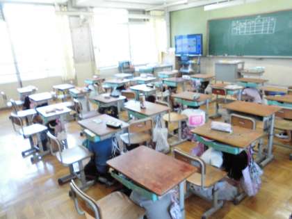 地震が来た時には,頭を必ず守るという行動がしっかりとできていました。