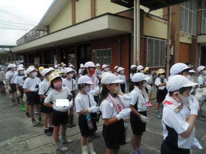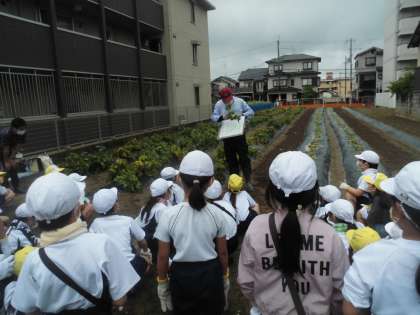 学校の近くにある畑へいき,「サツマイモうえ」を行いました。