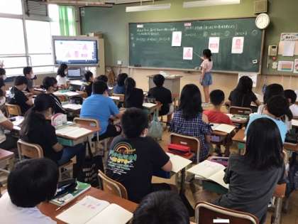 文字を使って表された「三角形の面積」を求める式の意味についてみんなで考えていました☆