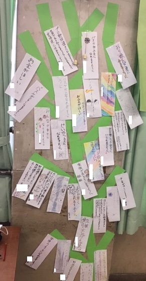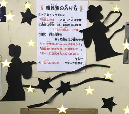1年生の掲示板や職員室扉など,「七夕」仕様になっています!!