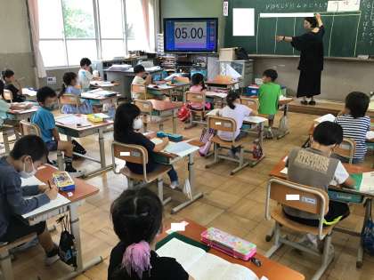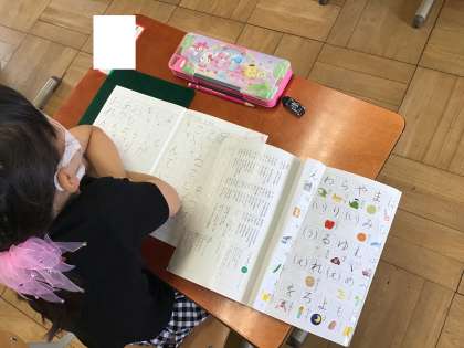 今日も1年生は「ひらがな」のおけいこをしていました。