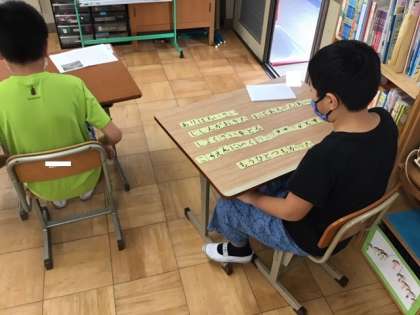 ひまわり学級では,「あいうえおの き」というおはなしを読み,自分たちも文字を合わせて色々な言葉や文を作っていました☆