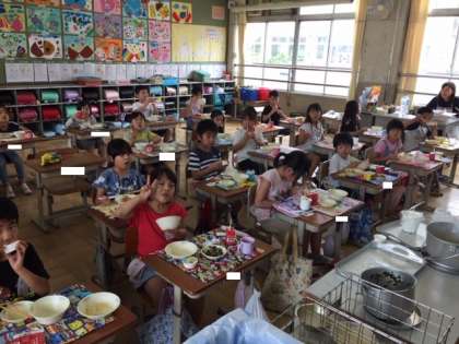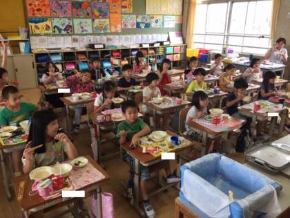 2年生の教室を覗くと,「パインゼリーおいしかったよ!!」「うずらたまごとキャベツのいためたやつもおいしいよ!!」と口々に教えてくれました☆