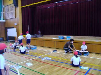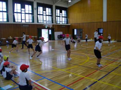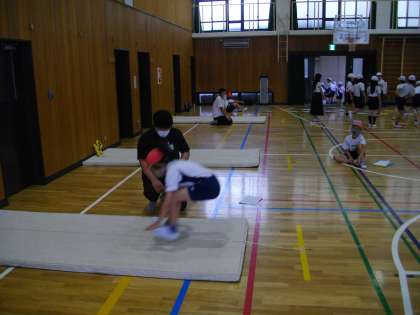 今日は,長座体前屈・立ち幅跳び・反復横跳びを実施しました。水曜日は,ソフトボール投げを計測します。
