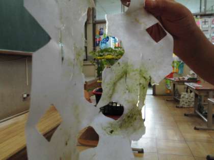 なかには,はっぱも つかって みどりいろに そめるひとや,ずこうの さくひんづくりの わざを いかして いろいろなかたちに するひとも いました。