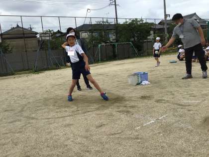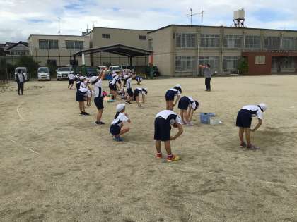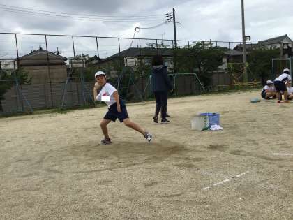 ウォーミングアップ後,教頭先生に投げ方を教えてもらい,みんな頑張ってソフトボールを少しでも前へとばすように頑張っていました!!