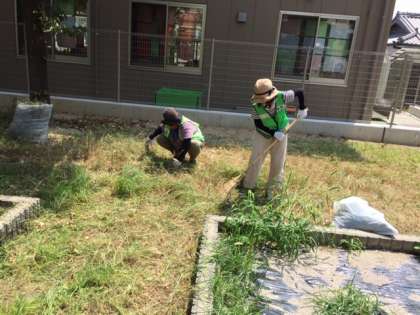今回も,PTAの方々を中心に教職員も協力しながら,中庭の伸びに伸びた雑草を刈ったり,クモの巣をとったりと校内環境を整えました!!