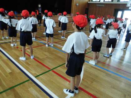 たいいくのがくしゅうで りれえあそびを おこないました。