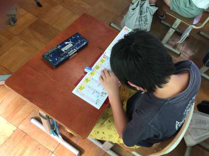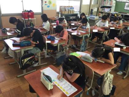 書き順やはね・はらいなど,新出漢字のポイントを確認しながら書いています☆