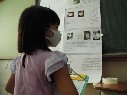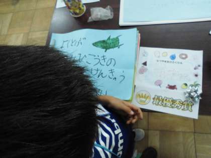 つくっている さくひんや しらべがくしゅうの せいかを もぞうしに まとめたさくひんを みて,