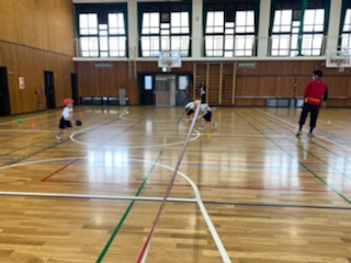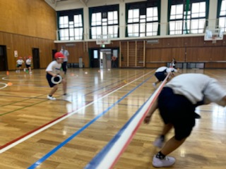 たいいくのがくしゅうでは,りれえあそびを しています。