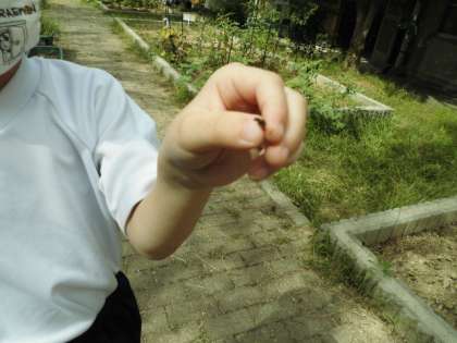 がっこうの なかにわで じっさいに あきみつけを はじめると,みんな いきいきと むしを おいかけたり,かれはを てにとったりして かつどうしていました。