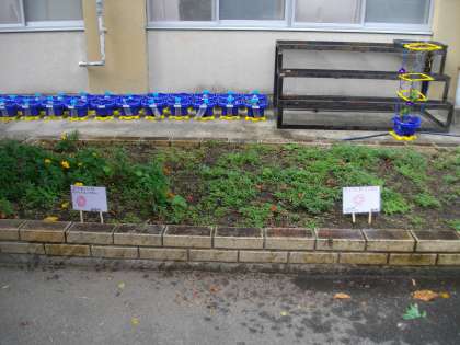 園芸委員会は,地域の園芸ボランティアさんと協力して花を花壇に植えています。今回の委員会活動では,看板を作って花壇に立てました。
