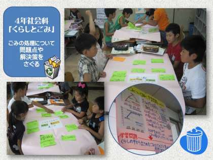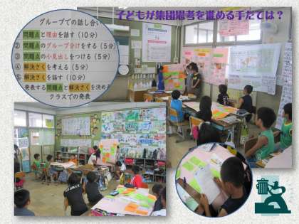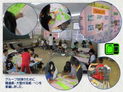 そして,必ず同じ学年の中で,指導案を微妙に修正しながら,事前の授業をしています。今日は,木曜日に行う授業の事前授業です。集団で(みんなで)考える授業を進めるための手だてとして,グループ討議を取り入れ,付箋紙に考えを書いて貼ったり,そのまとまりからキーワードを抽出して「小見出し」をつけたりする活動に取り組ませました。子どもが主体的に動いている姿が随所に見られ,大変よい授業でした。ただ「小見出し」の付け方によって,次の「解決策」の表し方に差が生まれることも実感しました。「小見出し」がしっかり考えられていないと,「解決策」に十分練られたものが挙がってこないという印象です。言語活動の質的な高さがもっと求められます。課題もはっきりしました。今日もまた,この授業をふり返って,次の手だてを考えることになるでしょう。