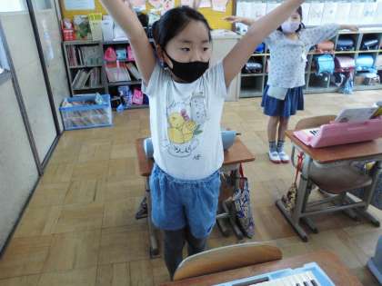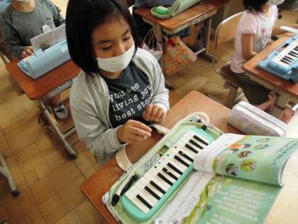 音楽科では,山のポルカの鍵盤ハーモニカの練習をしています。