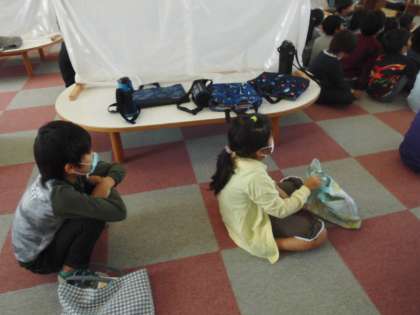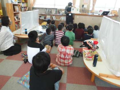 図書支援員の先生の読み聞かせを静かに聞きました。