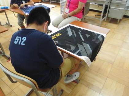 今日は余分な所を切る,縫うところを指アイロンで織目を付けることに取り組みました。