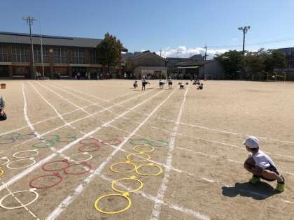 今年は,けんけんぱ→フラフープくぐり→ボールつきをしてゴールです。
