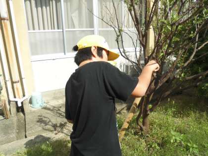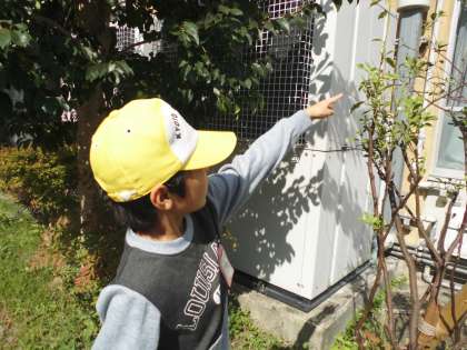 チョウチョの幼虫が10月にいたので,みんなびっくりしていました。