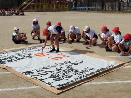 オープニングセレモニーでは,6年生が「書道パファーマンス」をし,みんなを勇気づけ,楽しませてくれました☆