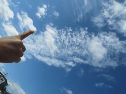 みんなで 空を見あげていると,ほんとうに くものくじらが あいにきてくれたような きがしました。