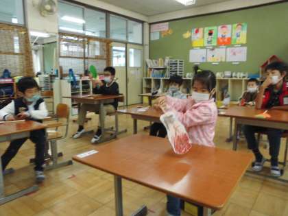 生活単元学習で,「サラダでげんき」のペープサートに取り組んでいます。