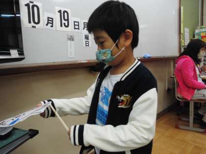 セリフを覚える事や絵を動かしながらセリフを言うのがとても難しそうにしていますが,みんな,頑張って取り組んでいます。