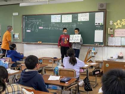 子どもたちの発表です。ホワイトボードを活用して実験結果と考察について話し合いました!