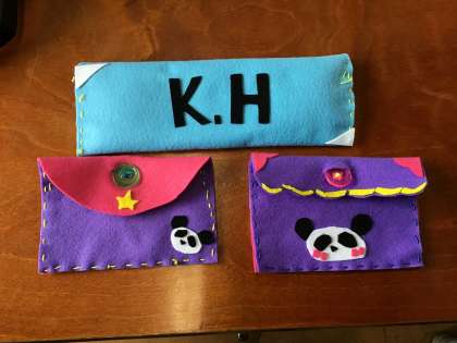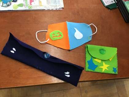 ペンケースやマスク,小銭入れなどをフェルトを用いて作りました。どのようなものを作ったのか・何を工夫したのかなど,ご家庭でもお話ください。