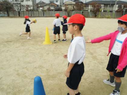 今日は体育の交流でころがしドッチをしました。