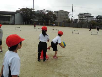 たいいくでは きょうから ころがしドッジボールが はじまりました。