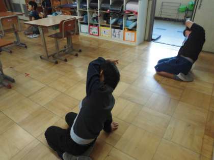 最初はなかなか膝がつかなかったり,腕が伸びなかったりしていましたが,