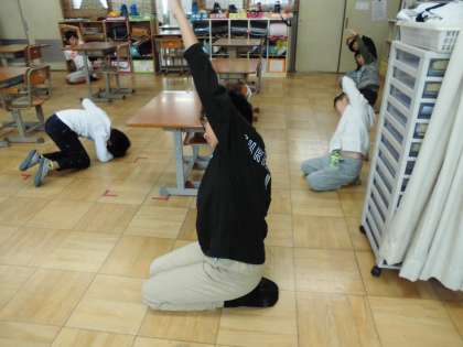 毎朝,朝の会にストレッチとダンスをしています。