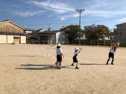 はじめてしあいをしましたが,優しくボールをなげたりゴールをねらってなげたりするのがむずかしかったですね。